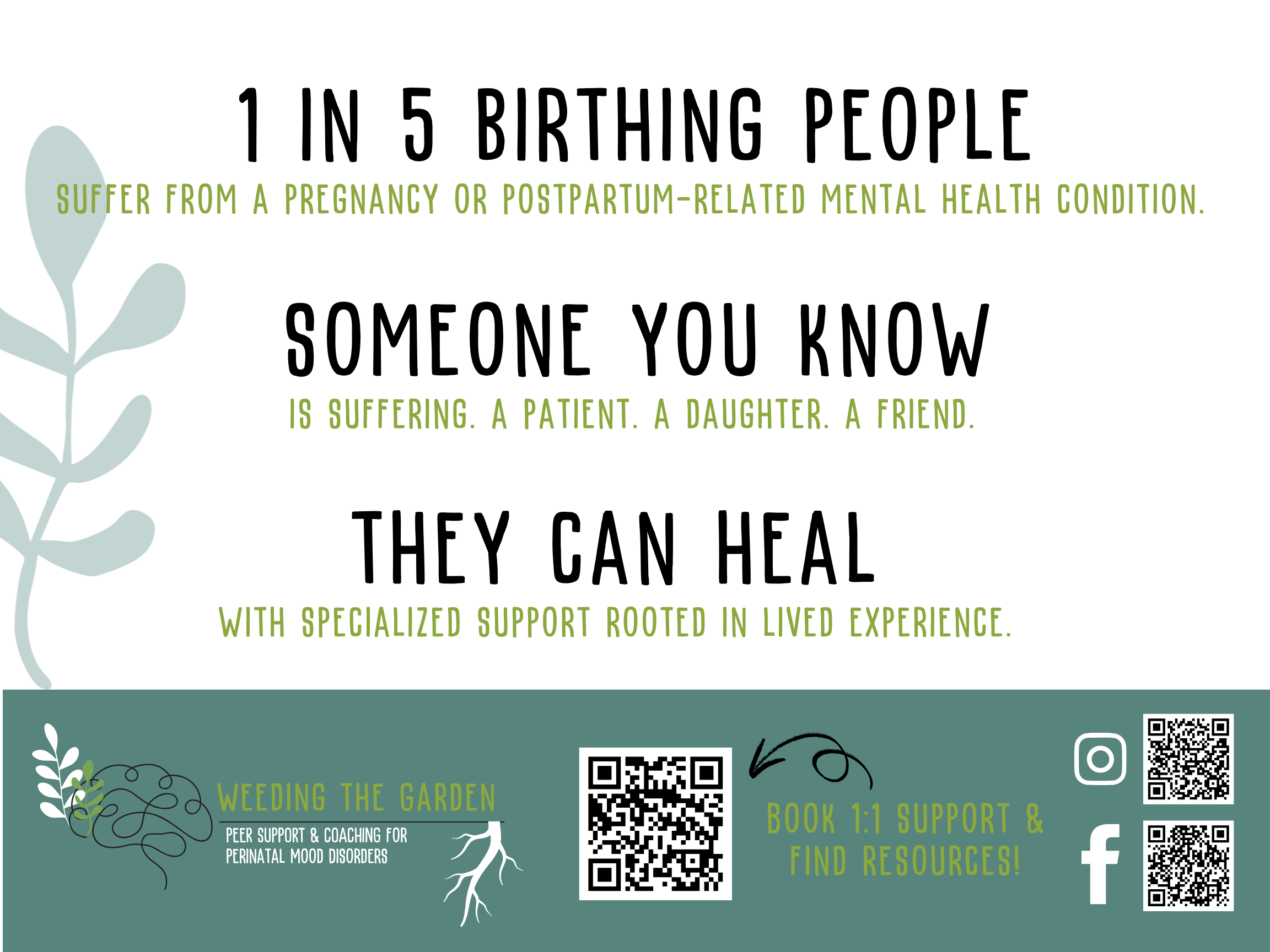 The perinatal period (from pregnancy up to 1 year postpartum) is one of the MOST vulnerable times in a woman’s life. Globally, 1 in 5 women will experience a mental health condition related to pregnancy or postpartum. That can seem scary—but the great news? YOU ARE NOT ALONE.